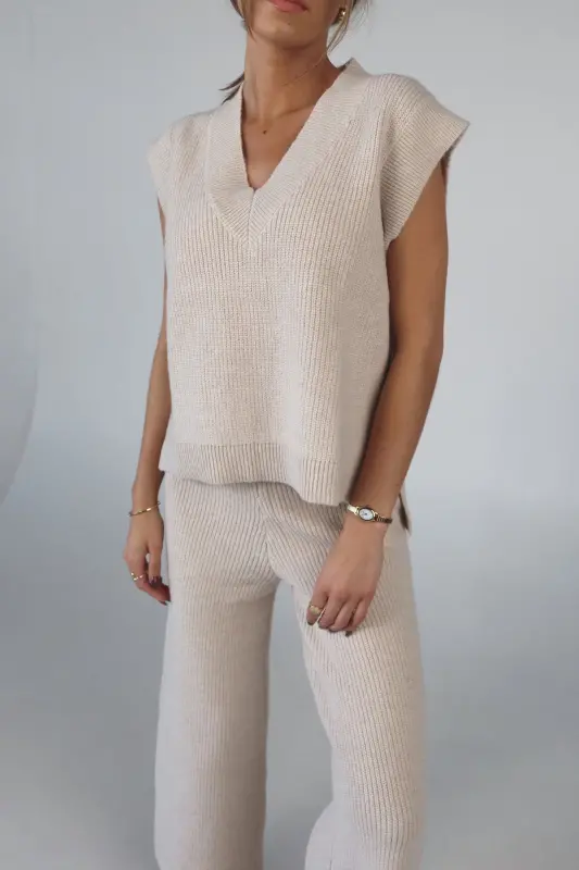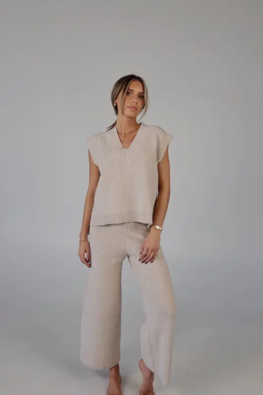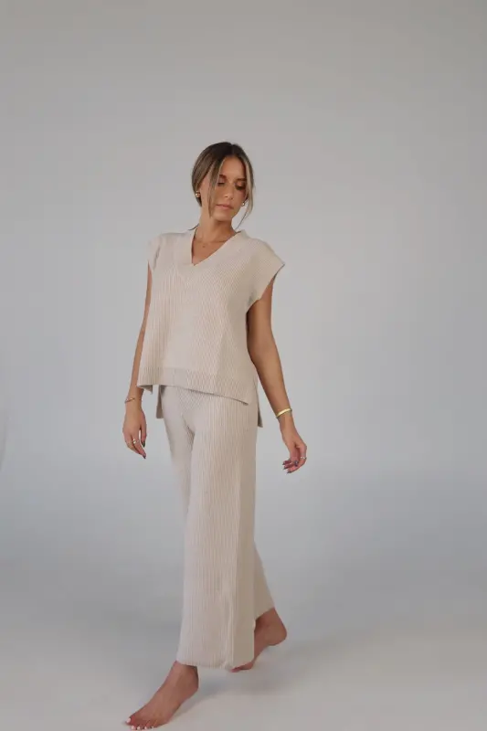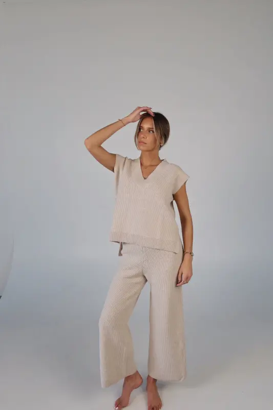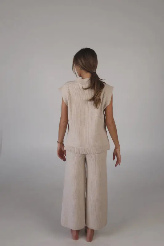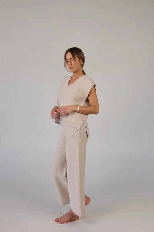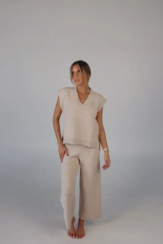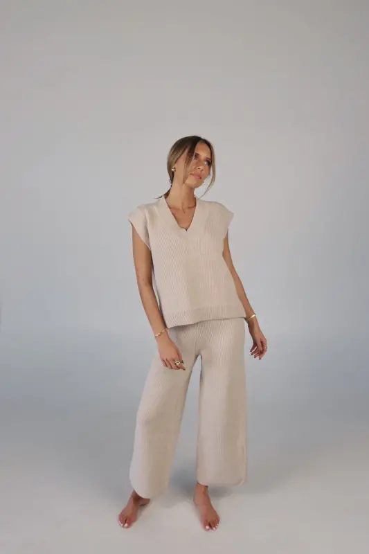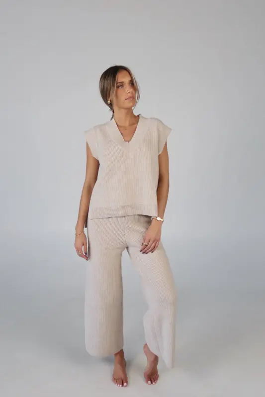 Stay effortlessly stylish and comfortable with the Cozy Knit Sweater Pants. Designed with a relaxed mid-rise fit, these slip-on pants feature a soft elastic waistband for a perfect fit that moves with you. Made from plush sweater fabric, they offer a luxurious feel while providing all-day comfort. Pair them with the Cloud Soft V-Neck Sweater Vest for a chic, coordinated lounge look that’s perfect for casual days, cozy nights, or running errands in style. These pants will quickly become your go-to for both comfort and elegance.