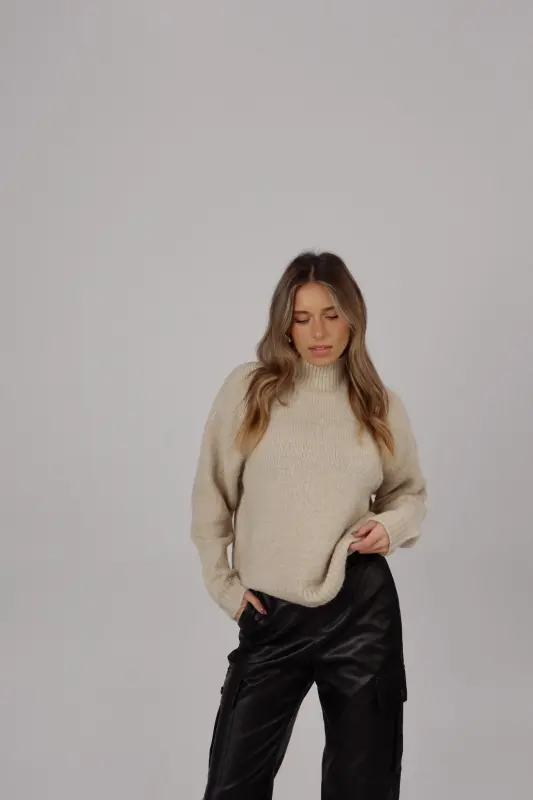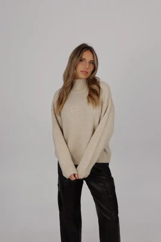 Meet your new comfort obsession: our perfectly oversized high-neck sweater in dreamy cream. This contemporary masterpiece combines dramatic volume with elegant simplicity, creating the ultimate statement piece for your wardrobe. The luxurious high neckline adds a sophisticated touch, while the relaxed, oversized silhouette delivers that coveted effortless chic vibe. Long sleeves provide cozy coverage, making it perfect for those 'throw-on-and-go' moments when you want to look polished without trying too hard. Style it with sleek bottoms for the perfect balanced silhouette, or embrace the oversized trend head-to-toe – this versatile piece plays well with everything in your closet.