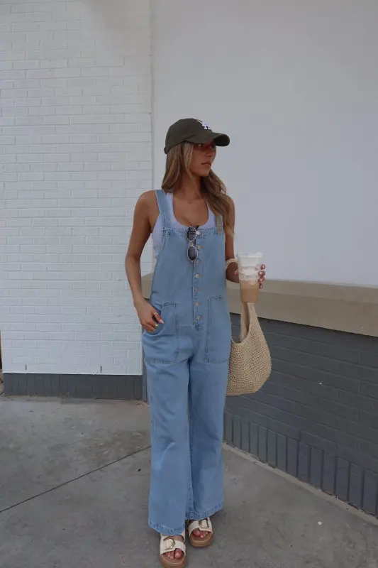Step up your style with our Denim Oversized Overall Pants, featuring a straight neckline and front metal buttons for a chic, modern look. Designed with front side pockets and thick straps that tie at the back, these overalls combine practicality with flair. The back pockets add functionality, while the wide-leg design ensures comfort and a trendy silhouette. Perfect for casual outings, these overalls are a must-have addition to your wardrobe.