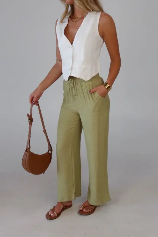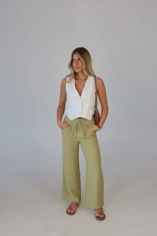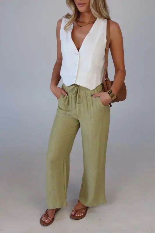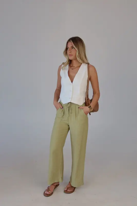 Our Leila White Linen Vest is a timeless blend of sophistication and comfort. Designed with breathable linen, a flattering v-neckline, monochromatic button-down detailing, and a double-lined finish, this versatile piece exudes effortless elegance. Perfect for both professional and casual occasions, this comfortable yet classy vest will elevate your wardrobe.