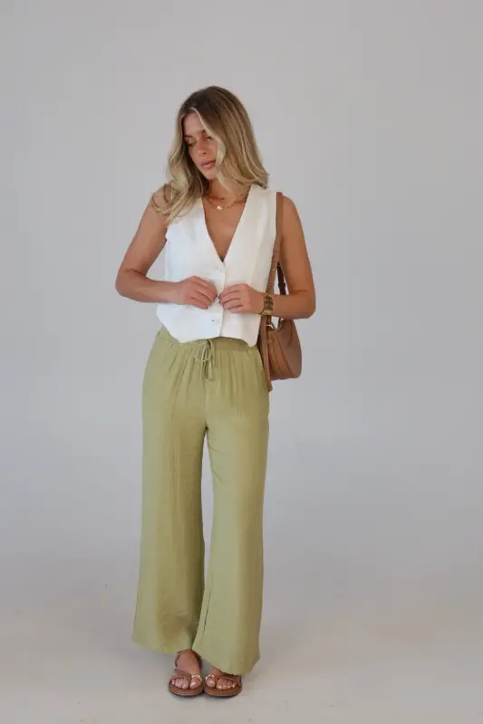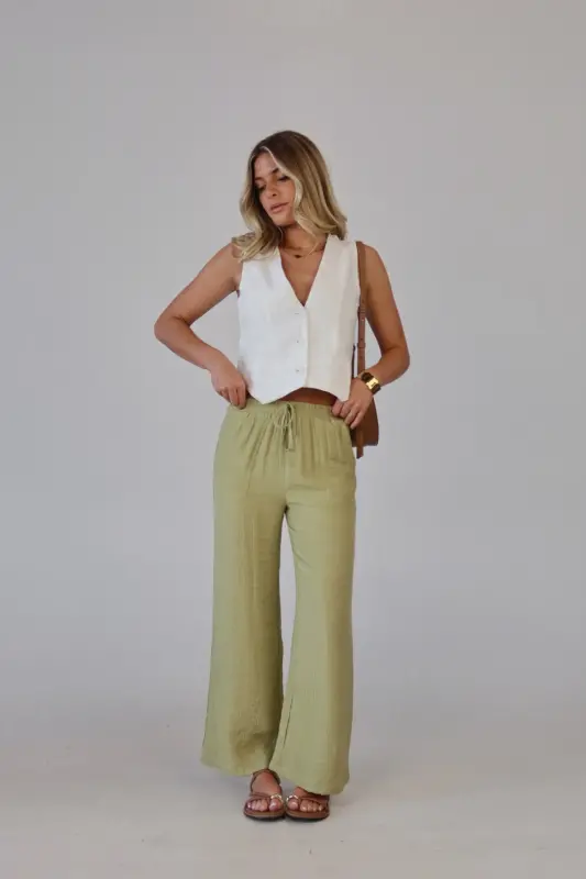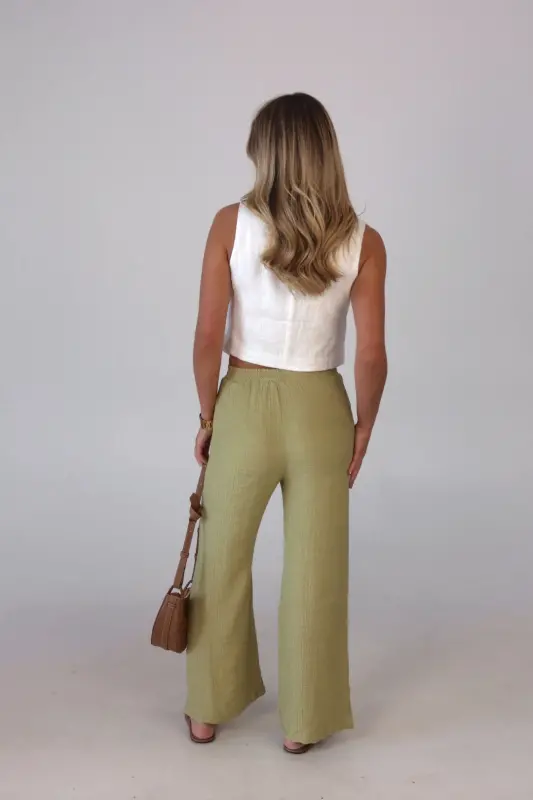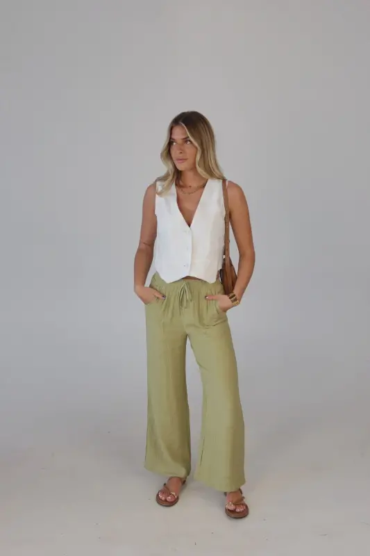 The Quinn Pull On Pant combines effortless style and comfort with its lightweight, flowy design and wide-leg silhouette. The elastic high-waisted waistband and functional side pockets allow comfortability and convenience. This slip on pant can be dressed up or down and is a staple that will add a pop of color to your pant collection this spring.